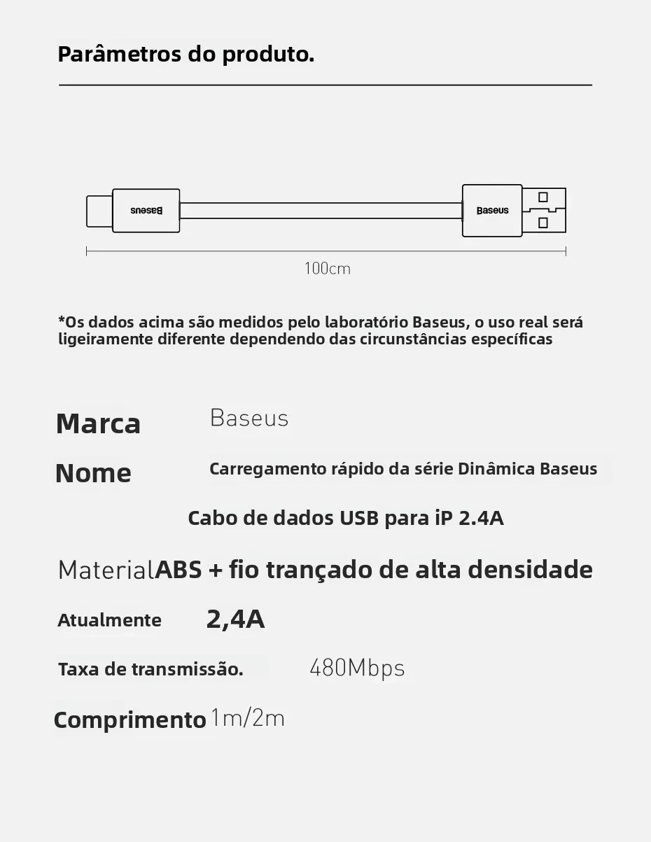 Cabo de Dados de Carregamento Rápido da Série Dynamic 2,4 A