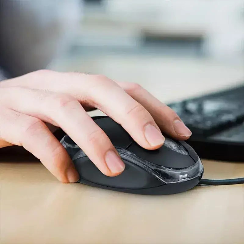 Mouse Optico com fio foi adaptado aos seus movimentos.